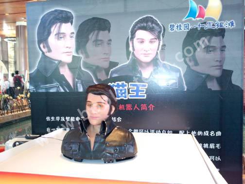 機(jī)器人貓王,這個(gè)智能防真機(jī)器 人更是將仿生學(xué)及智能電子控制真正完美的結(jié)合,很難另人想像,在一副幾乎可以亂真的面孔下,五官居然全都可以活動(dòng)自如,配上他的成名曲,跟著音樂節(jié)拍,眼睛忽閃忽閃,時(shí)而注視你,時(shí)而望向遠(yuǎn)方,挑挑眉毛,搖頭晃腦,仿佛一代巨星復(fù)活,給您開一場專場演唱會(huì),再加上您可以為他量身打造各種造型,可當(dāng)珍藏紀(jì)念,更可以接上你的手機(jī),MP3,把他當(dāng)成一個(gè)桌面人型音響,還可以接上MIC麥克風(fēng)跟他一起高歌一曲,別有一番味道。